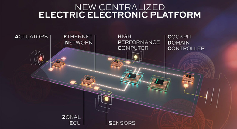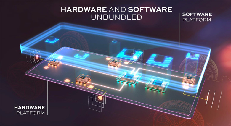 Figure 2: Software-Defined Vehicles (SDV's) centralized electric electronics platform and its separation of hardware and software domains.