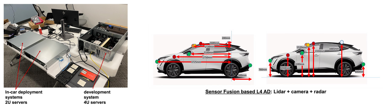 Figure 6: Ampere Arm-based systems with NVIDIA GPUs and FPGAs (to emulate our future silicon specialized accelerators) in demonstrations of our AD Level 4 algorithms and software