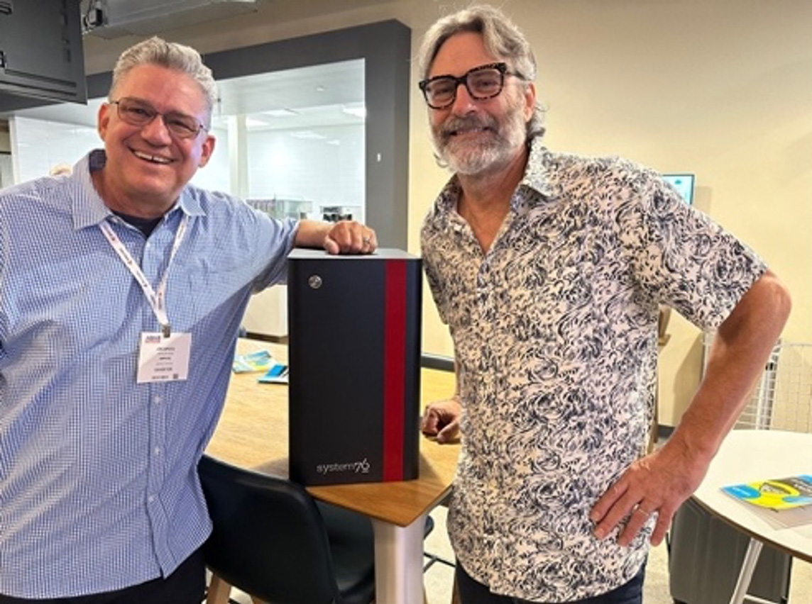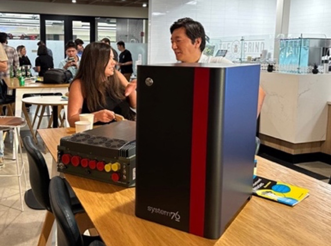 Figure 7: System76 Thelio Astra, autonomous racing maven Will Bryan's reaction, and Ampere car guy Joe Speed and