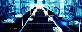 「NISSAN IMx」は、Vehicle to Home(V2H)やVehicle to Building(V2B)システムにより建物に電力を共有したり、Vehicle to Grid(V2G)システムを通じ送電網につながることもできます。「NISSAN IMx」の大容量バッテリーが、電力需給を調整するVirtual Power Plant(VPP:仮想発電所)の一端を担い、再生可能エネルギーの有効活用を始めとしたスマートなエネルギーマネジメントに貢献します。