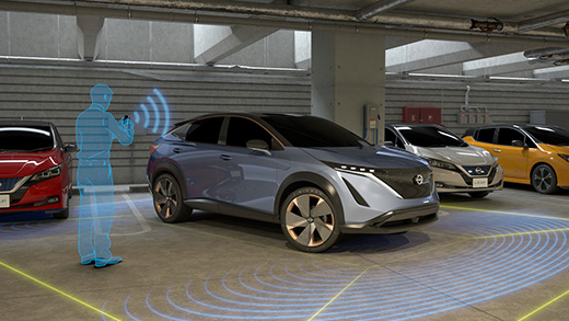 クルマが目的地に到着した後は、「プロパイロット リモートパーキング」をスマートフォンや専用デバイスで操作し、クルマを自動駐車させることができます。ドライバーが降車してからリモート操作で駐車ができるので、駐車スペースが狭く、ドアを大きく開けることが難しい場合などにも便利な機能です。