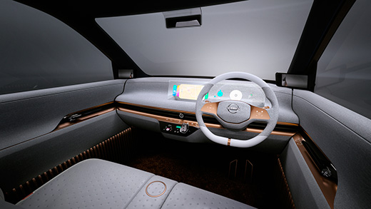 「ニッサン IMk」は、最新のコネクティビティ機能を搭載し、クルマと社会、ドライバーがいつでもシームレスにつながります。「ニッサン IMk」はスマートフォンと連携してドライバーを認証し、クルマに乗り込むたびにシートポジションや好みの香りなど、認証されたドライバー個人にパーソナライズされたセッティングに変更します。また、ドライバーが乗り込む前にエアコンやステアリングヒーター、シートヒーターなどが作動することで、乗車する人が快適な車内空間をあらかじめ作ることもできます。そのため、家族でクルマを共有する場合でも、いつでも車内を自分のお気に入りのプライベートスペースにしておくことができます。ドライバーのスケジュール管理ソフトともつながり、クルマが渋滞など最新の交通状況を考慮してスケジュールに間に合う出発時間をスマートフォンに通知するので、時間を無駄にしないシームレスな移動を実現します。