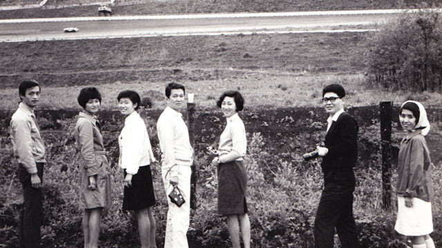 日本女子大学の卒業式にて、住居学科の友人と。(1967年3月:右から2番目が島田)