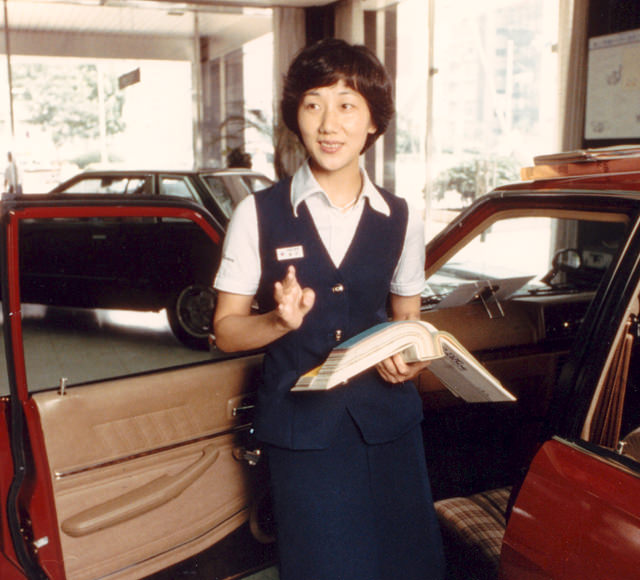 後にこの経験が活かされることになり、2002年、再びグローバルブランド戦略としてのVI( Visual Identity)開発に取り組むことになる。 その後、広報部では企業のイメージ戦略に携わり、1984年には女性初の課長職に就任。やはり課長として1988年から席を置いた営業企画部では、全国ディーラー店舗のリニューアルの指揮をとった。それまでの訪問販売型から店舗販売型へ、いわば自動車の販売方法の変革をともなった大改革である。