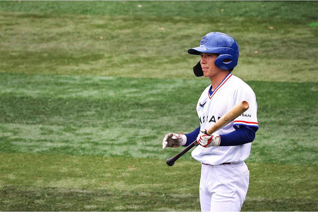 今のチームの練習は、大学時代よりもフィジカル面が重視されており、アップの時間も長く、体の土台づくりに重点を置いている実感があります。大学時代から社会人チームと対戦する機会はありましたが、社会人選手はスイングが速く、打球の勢いも違うという印象を持っていました。自分も社会人1年目として、そうした部分を見せられるように、現在はフィジカル強化に励んでいます。
