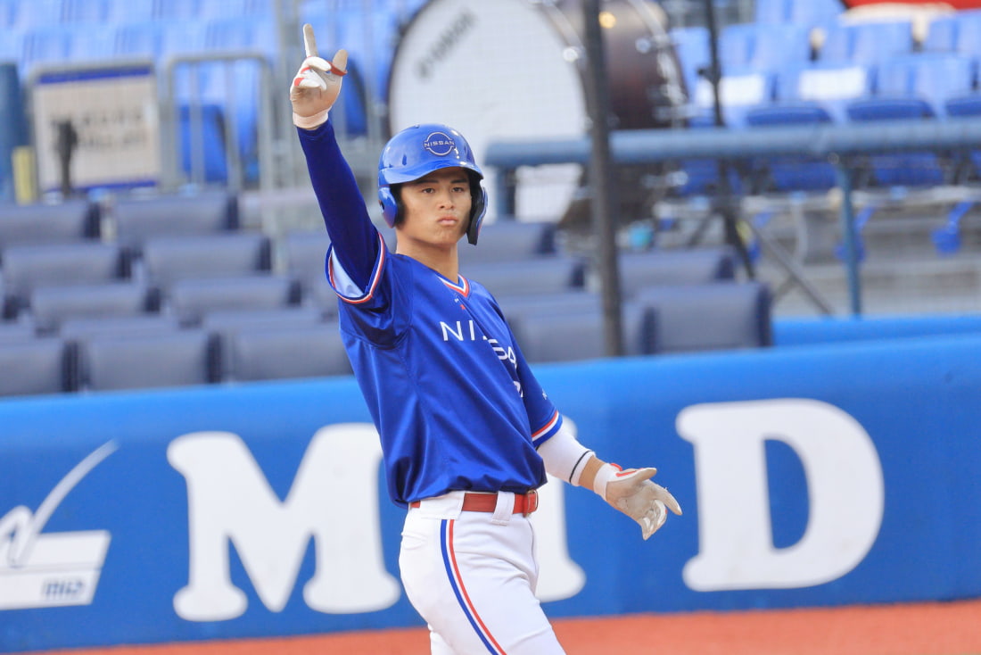 試合は初回から動きました。1番・宮川選手がレフト線への二塁打で出塁すると、続く2番・朝岡選手がセンター前にヒット。わずか6球で先制点を奪う鮮やかな攻撃に、三塁側スタンドの日産応援団は大きく沸きました。