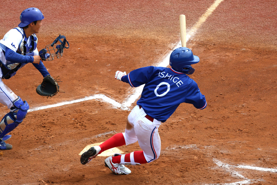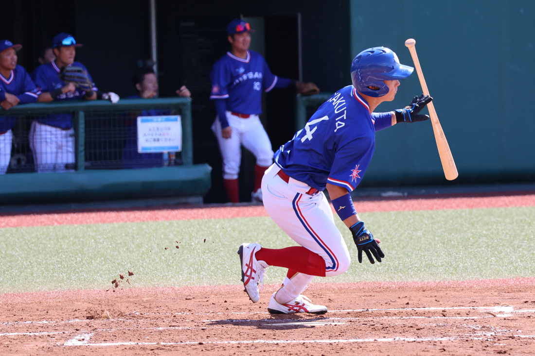 その後は安藤投手が粘投で無失点を継続。1点ビハインドのまま迎えた9回表、鍛治園選手が再び出塁し、石毛選手のバントと相手のミスで好機を演出。比嘉選手の強襲安打で同点、田中選手の打席で暴投が生まれ、梅澤選手が好走で逆転のホームイン!