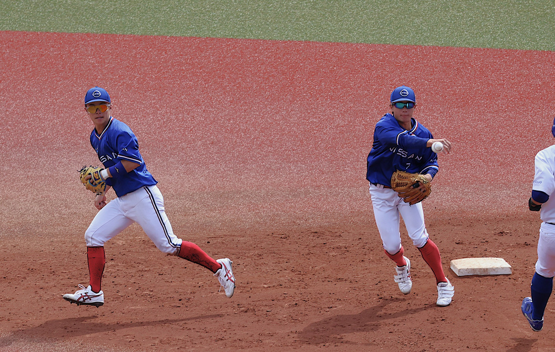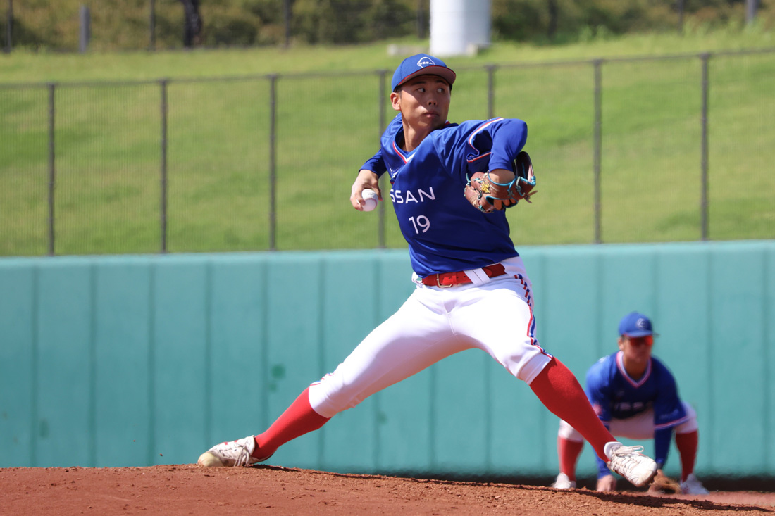 2回、鍛治園選手の豪快な先制ホームランで勢いづいた日産は、石毛選手の出塁と角田選手のタイムリーで2点を先取。先発・領家投手は序盤を無失点で抑えるも、3回に押し出し四球で同点に。さらにこのピンチで緊急救援となった安藤投手がタイムリーを許して逆転。