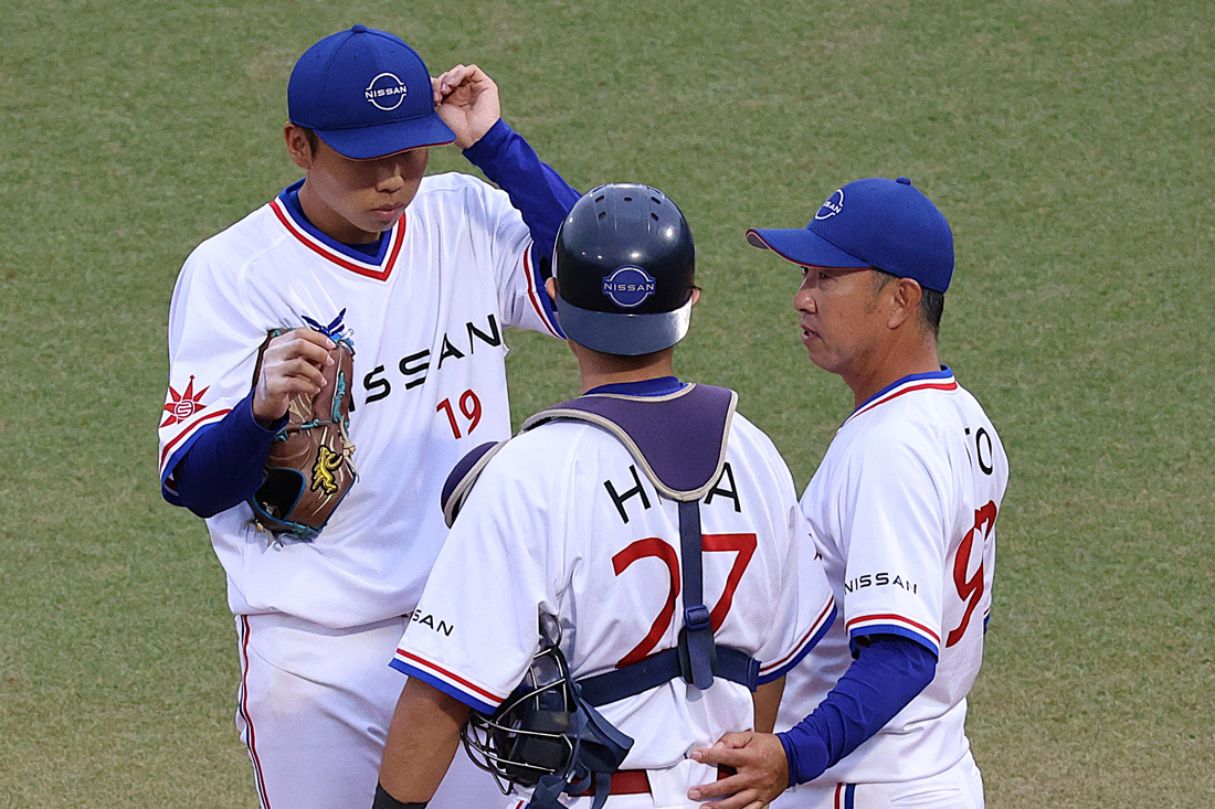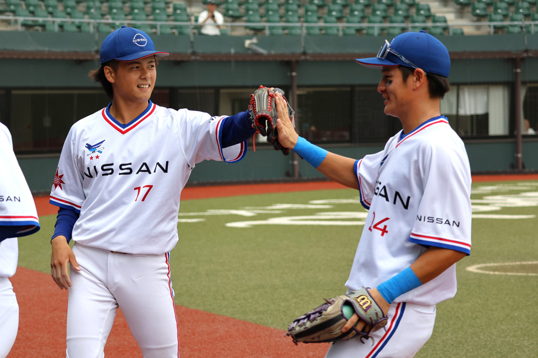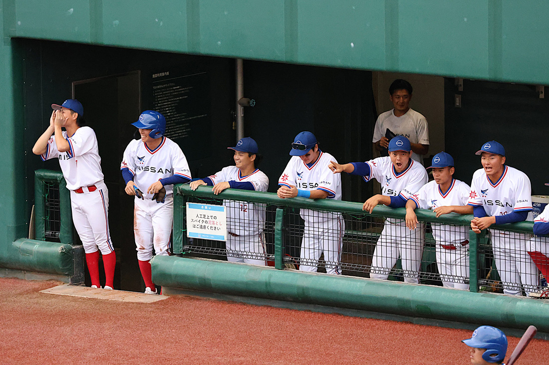 試合は無死一二塁で始まるタイブレイクの延長戦へ。10回表の相手の攻撃を0点で守り切った日産、先頭の宮川選手がセンター前で無死満塁、一死後に石飛選手が死球を受けて押し出し、サヨナラ勝ちを果たしました!
